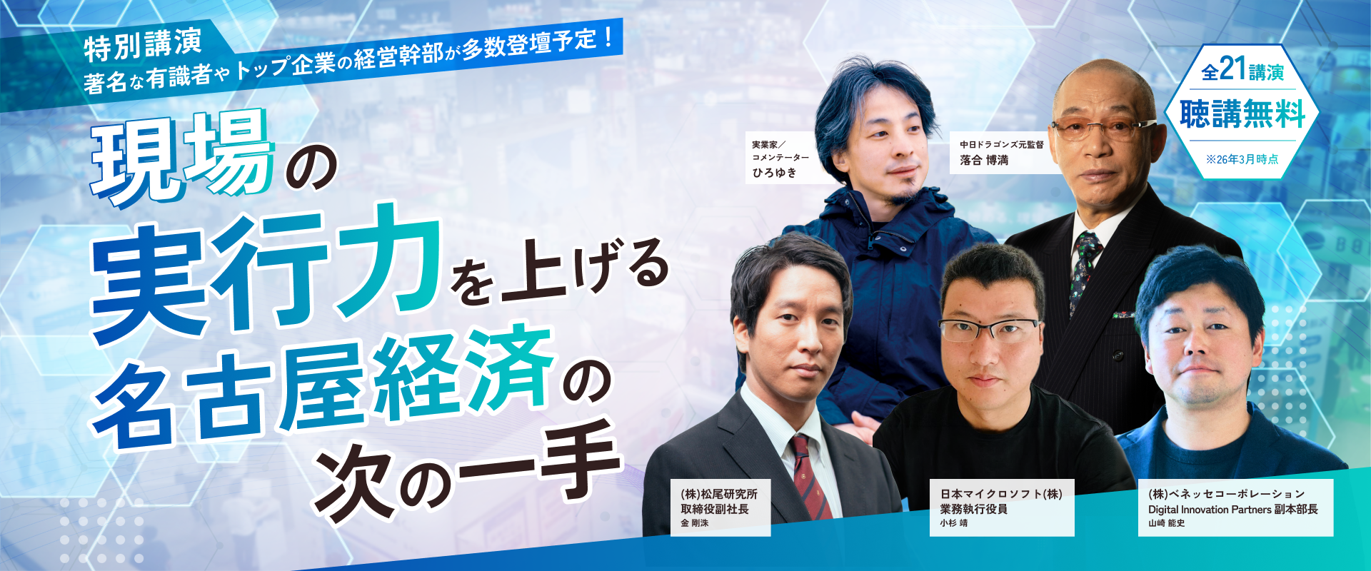ひろゆき氏・落合 博満氏などの著名な有識者や、マイクロソフト、ソフトバンク、ベネッセ、富士通、楽天などの業界トップ企業の経営陣による豪華講演を21セッション全てが無料でご聴講可能です。